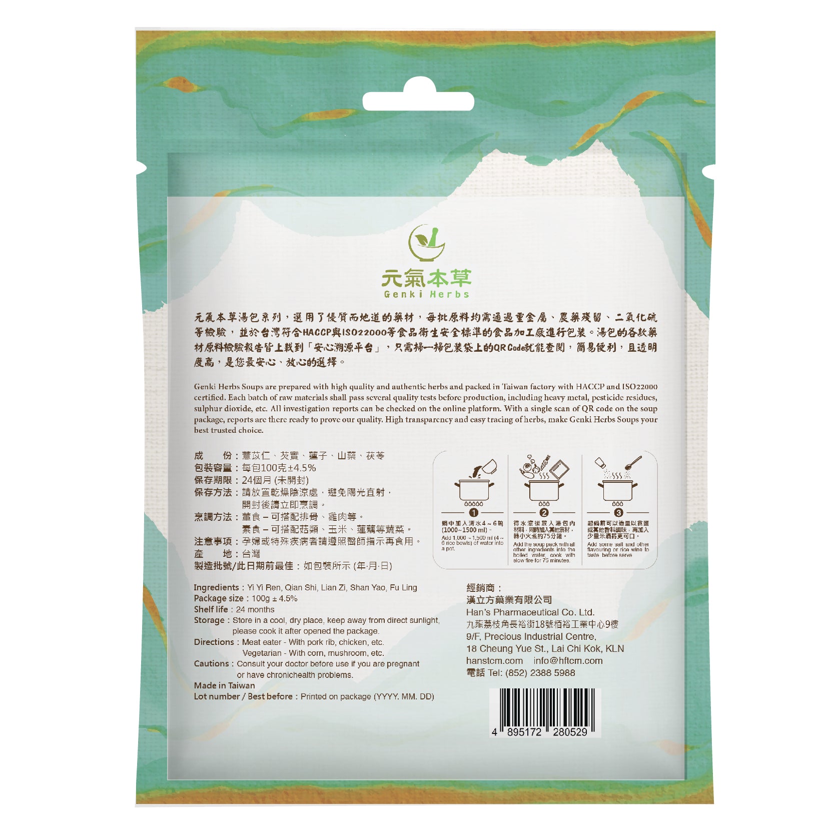 四神湯各種藥材溫和,均有補脾健胃的功能。芡實有益腎固精,健脾止瀉,除濕止帶的功效;蓮子養心安神,益腎澀精;山藥即懷山,能益氣養陰,補脾肺腎,固精止帶;茯苓有利水滲濕,健脾安神的作用,再加上薏苡仁清熱利水,以增強湯中健脾滲濕的功能,適合一家大小,一年四季均能食用的保健湯品。